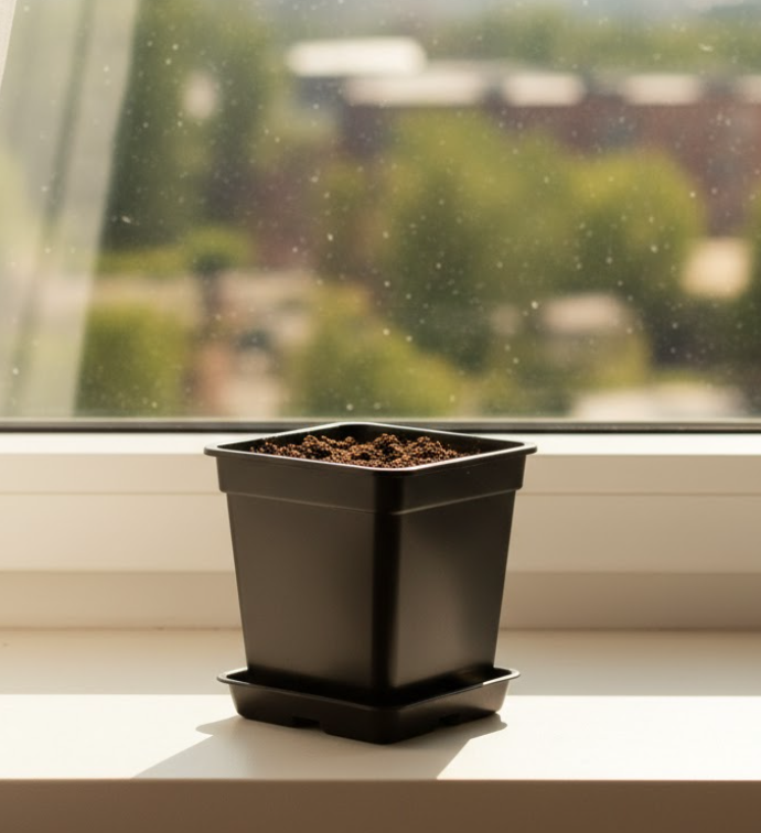 Поставте горщик P9 у добре освітлене місце — підвіконня або засклений балкон.